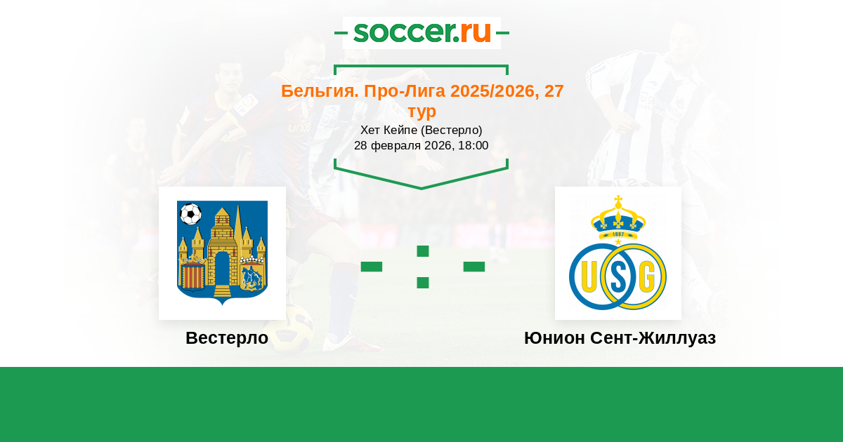 Бельгия. Про-Лига 27.09.2025 Юнион Сент-Жиллуаз Логотип футбольный клуб Юнион Сент-Жиллуаз (Брюссель) 2:0 Логотип футбольный клуб Вестерло Вестерло