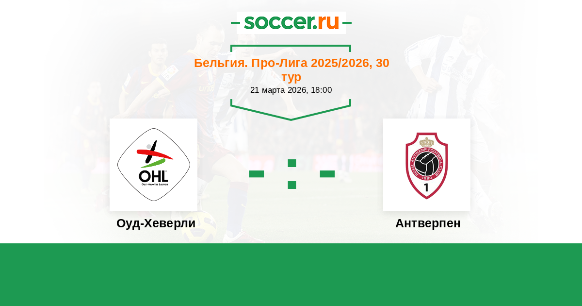 Бельгия. Про-Лига 30.11.2020 Антверпен Логотип футбольный клуб Антверпен 3:2 Логотип футбольный клуб Оуд-Хеверли (Левен) Оуд-Хеверли