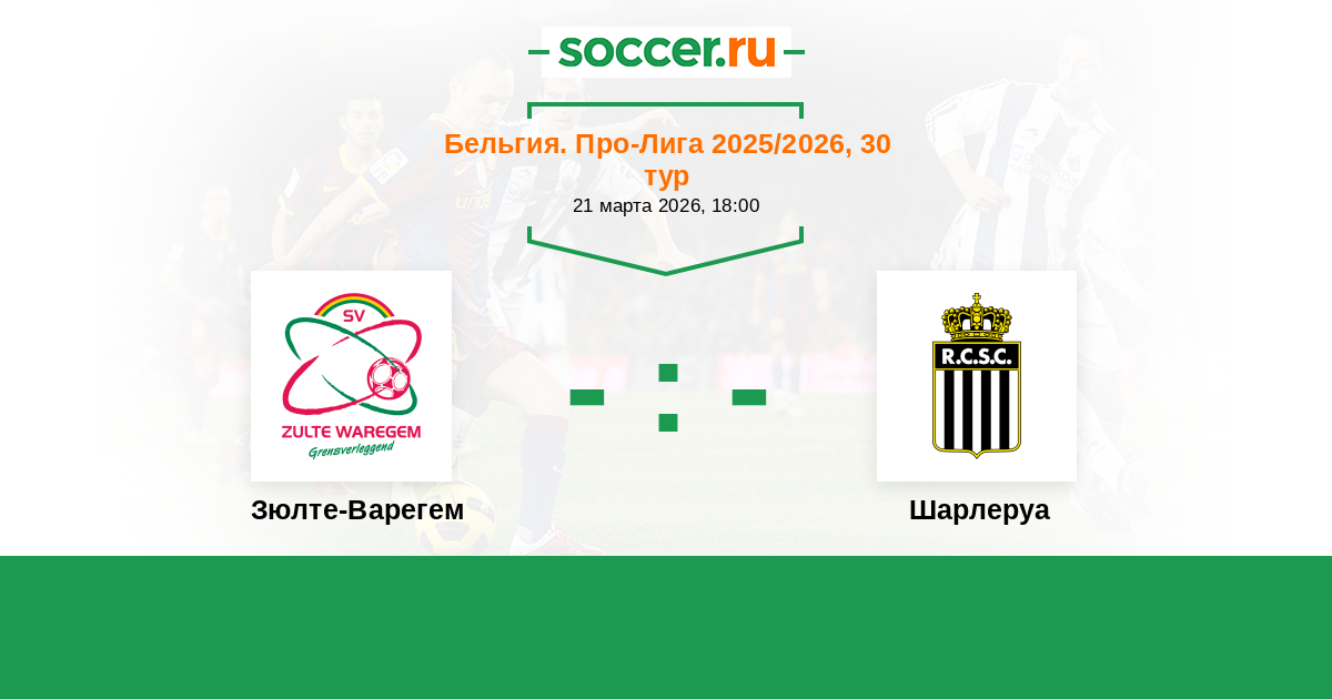 Бельгия. Про-Лига 27.10.2013 Зюлте-Варегем Логотип футбольный клуб Зюлте-Варегем 1:1 Логотип футбольный клуб Шарлеруа Шарлеруа