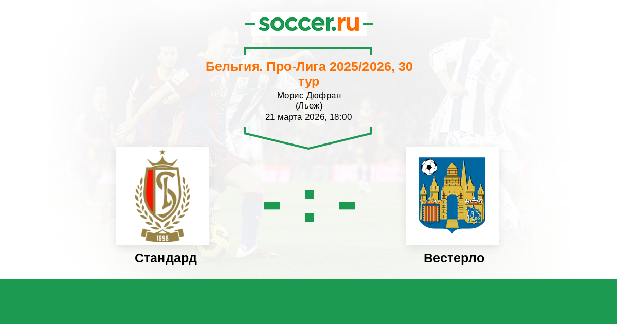 Бельгия. Про-Лига 29.01.2011 Стандард Логотип футбольный клуб Стандард (Льеж) 2:1 Логотип футбольный клуб Вестерло Вестерло