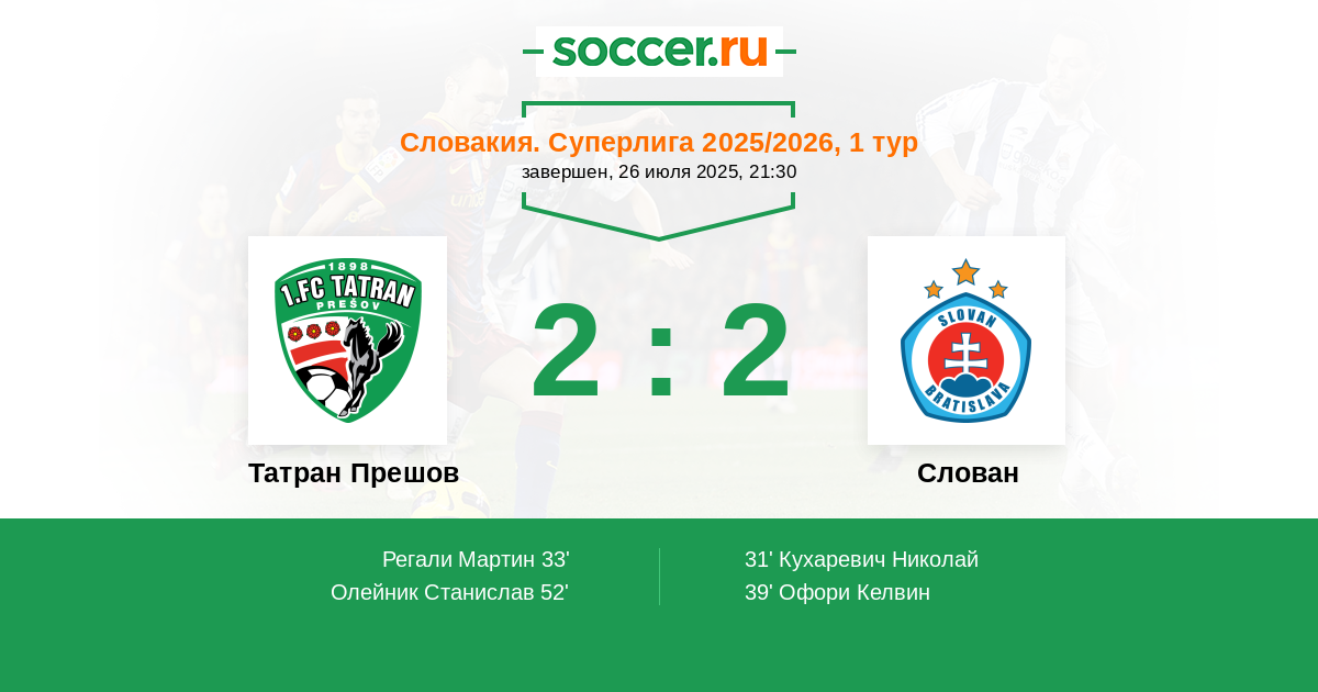 33' (1:1) Регали Мартин (9) (Сиплак Михал (3))