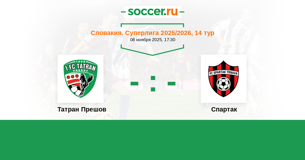 Протокол матча Татран Прешов против Спартак