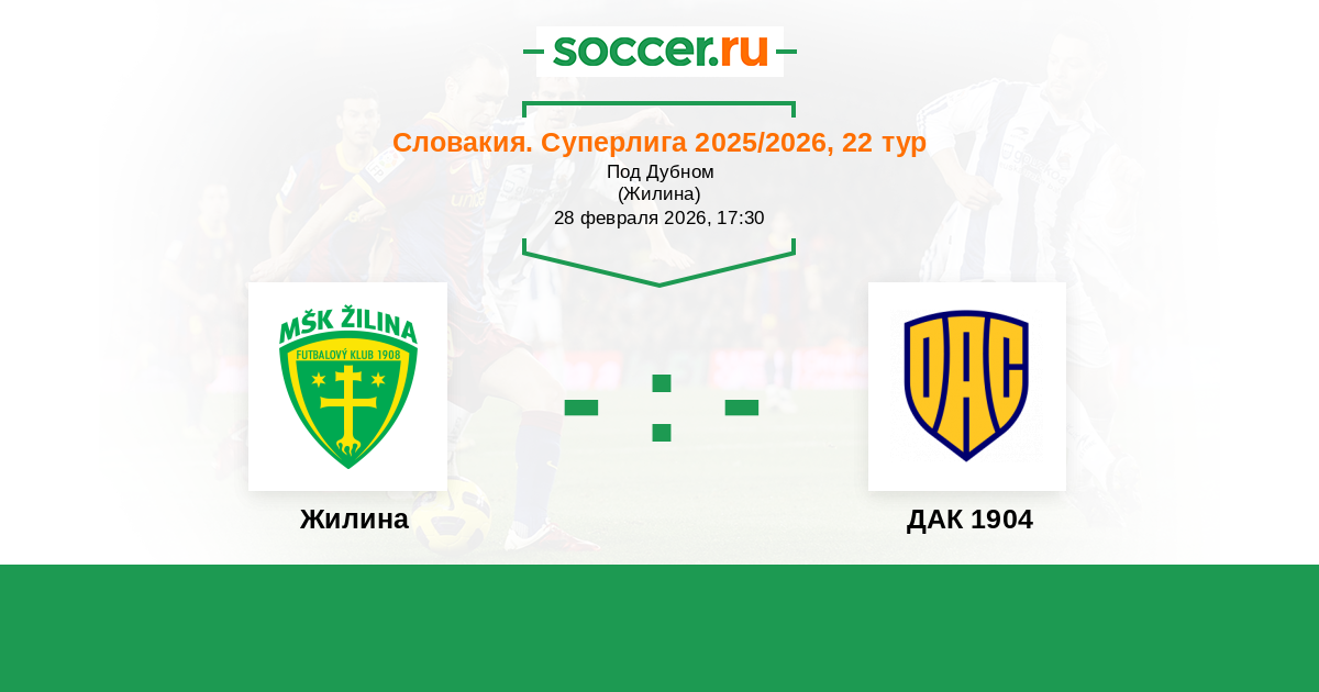 Словакия. Суперлига 25.08.2018 ДАК 1904 Логотип футбольный клуб ДАК 1904 (Дунайська Стреда) 0:0 Логотип футбольный клуб Жилина Жилина