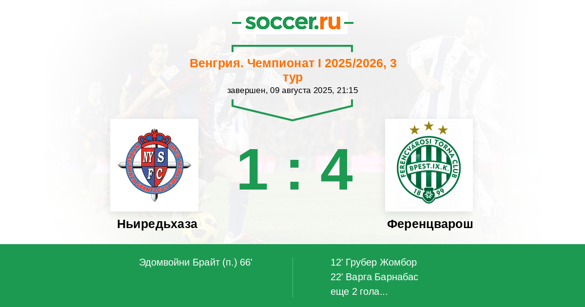 12' (0:1) Грубер Жомбор (30) (Варга Барнабас (19))