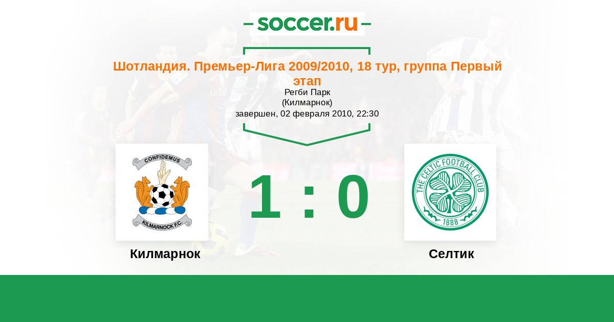 Шотландия. Премьер-Лига 27.03.2010 Селтик Логотип футбольный клуб Селтик (Глазго) 3:1 Логотип футбольный клуб Килмарнок Килмарнок