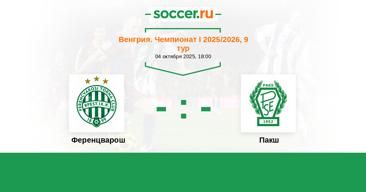 Протокол матча Ференцварош против Пакш