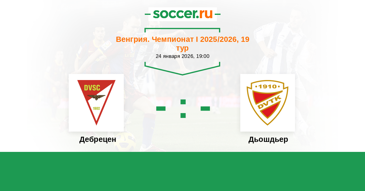 Венгрия. Чемпионат 1 19.10.2019 Дебрецен Логотип футбольный клуб Дебрецен 2:1 Логотип футбольный клуб Дьошдьер (Мишкольц) Дьошдьер