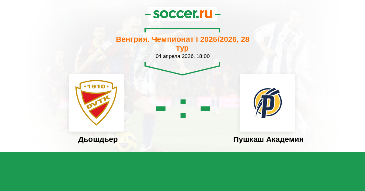 Венгрия. Чемпионат 1 21.04.2018 Дьошдьер Логотип футбольный клуб Дьошдьер (Мишкольц) 0:1 Логотип футбольный клуб Пушкаш Академия (Фелксут) Пушкаш Академия