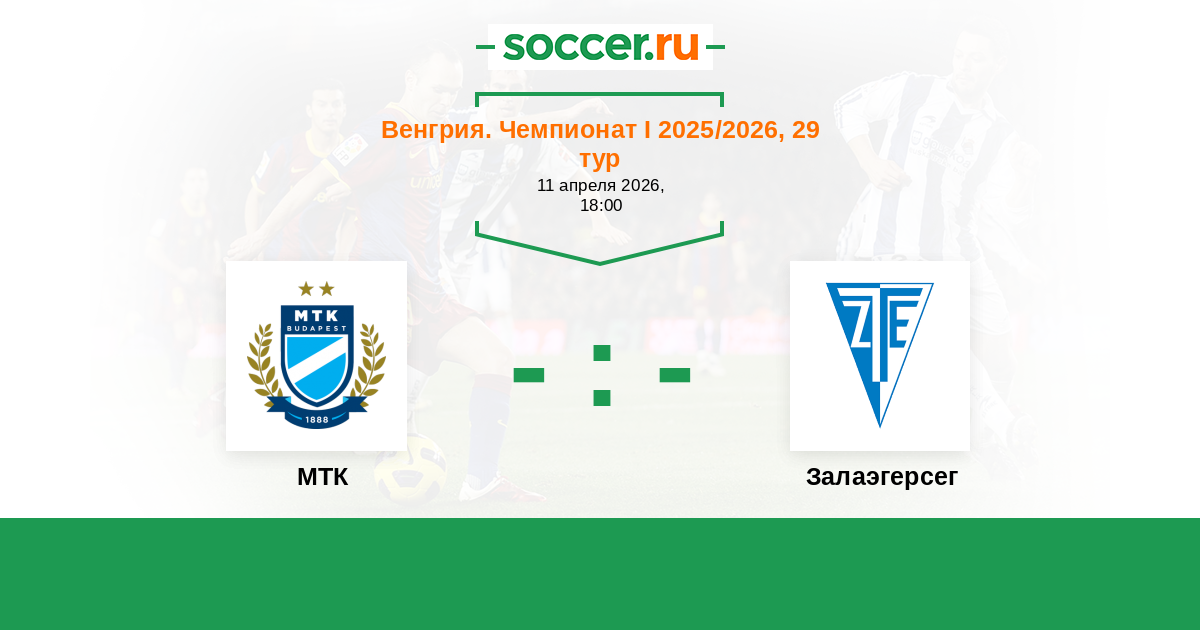 Венгрия. Чемпионат 1 03.10.2021 Залаэгерсег Логотип футбольный клуб Залаэгерсег 2:0 Логотип футбольный клуб МТК (Будапешт) МТК
