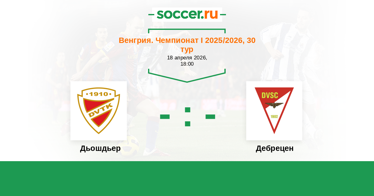 Венгрия. Чемпионат 1 16.03.2019 Дебрецен Логотип футбольный клуб Дебрецен 1:0 Логотип футбольный клуб Дьошдьер (Мишкольц) Дьошдьер