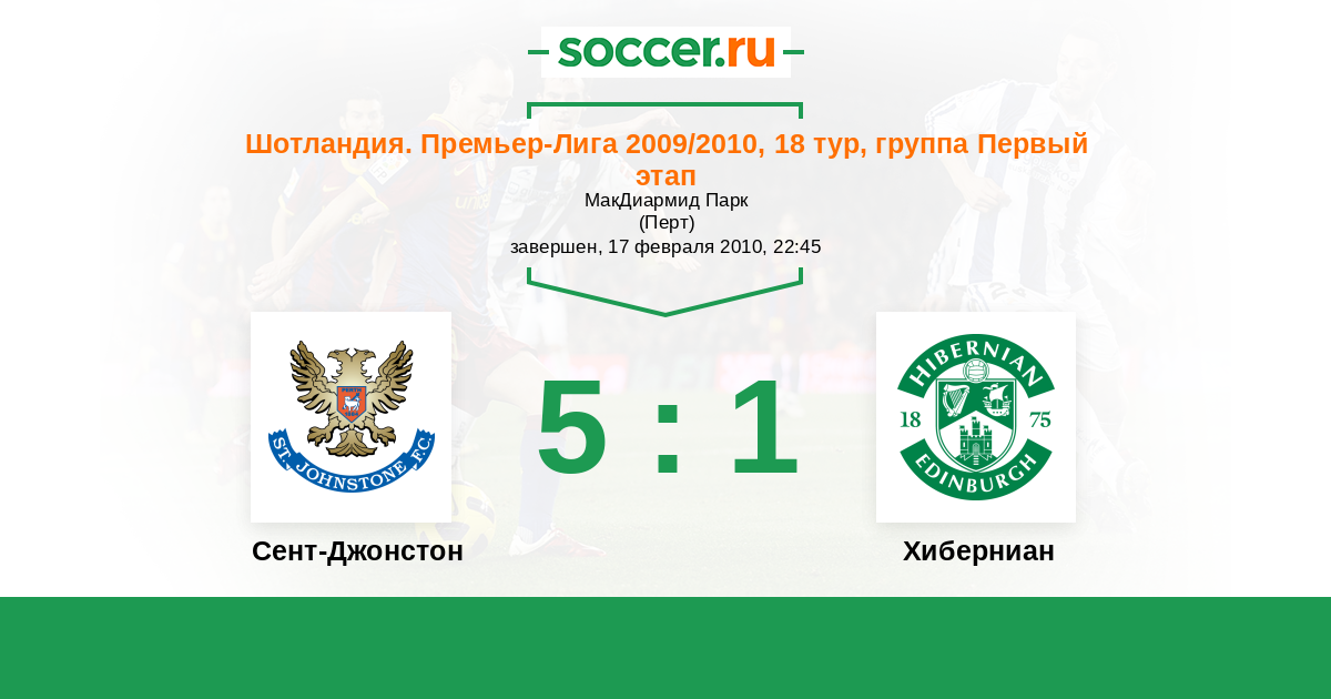 Шотландия. Премьер-Лига 27.02.2010 Хиберниан Логотип футбольный клуб Хиберниан (Эдинбург) 1:1 Логотип футбольный клуб Сент-Джонстон (Перт) Сент-Джонстон