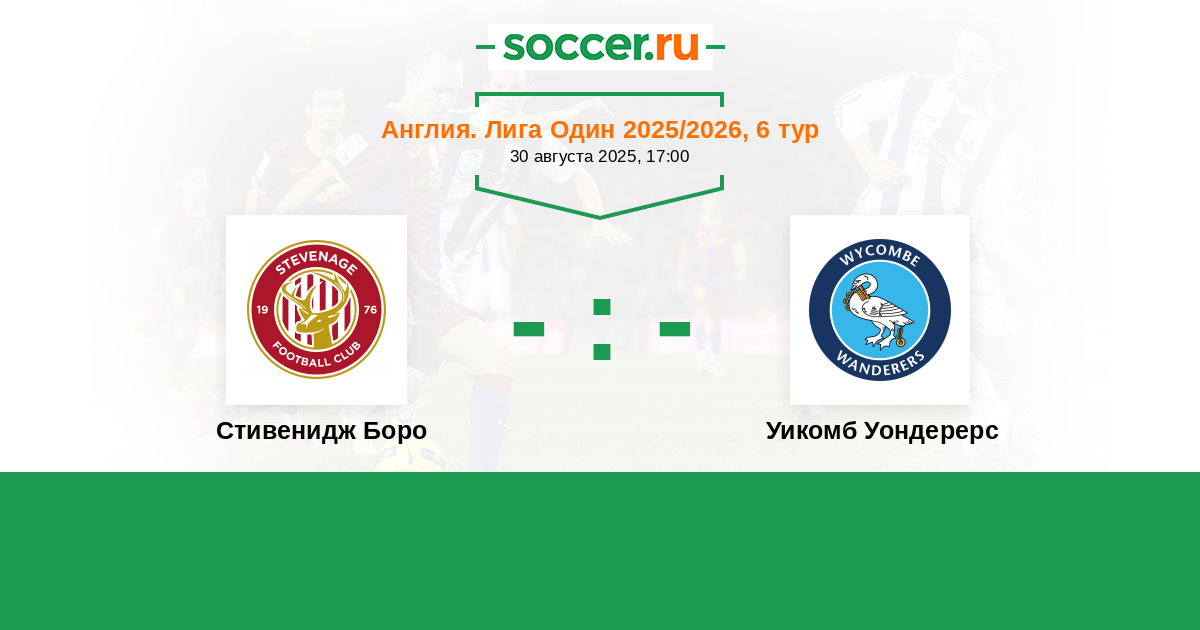 Протокол матча Стивенидж Боро против Уикомб Уондерерс