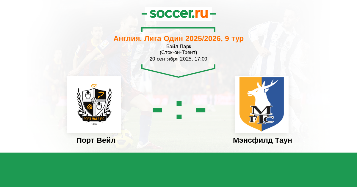 Протокол матча Порт Вейл против Мэнсфилд Таун
