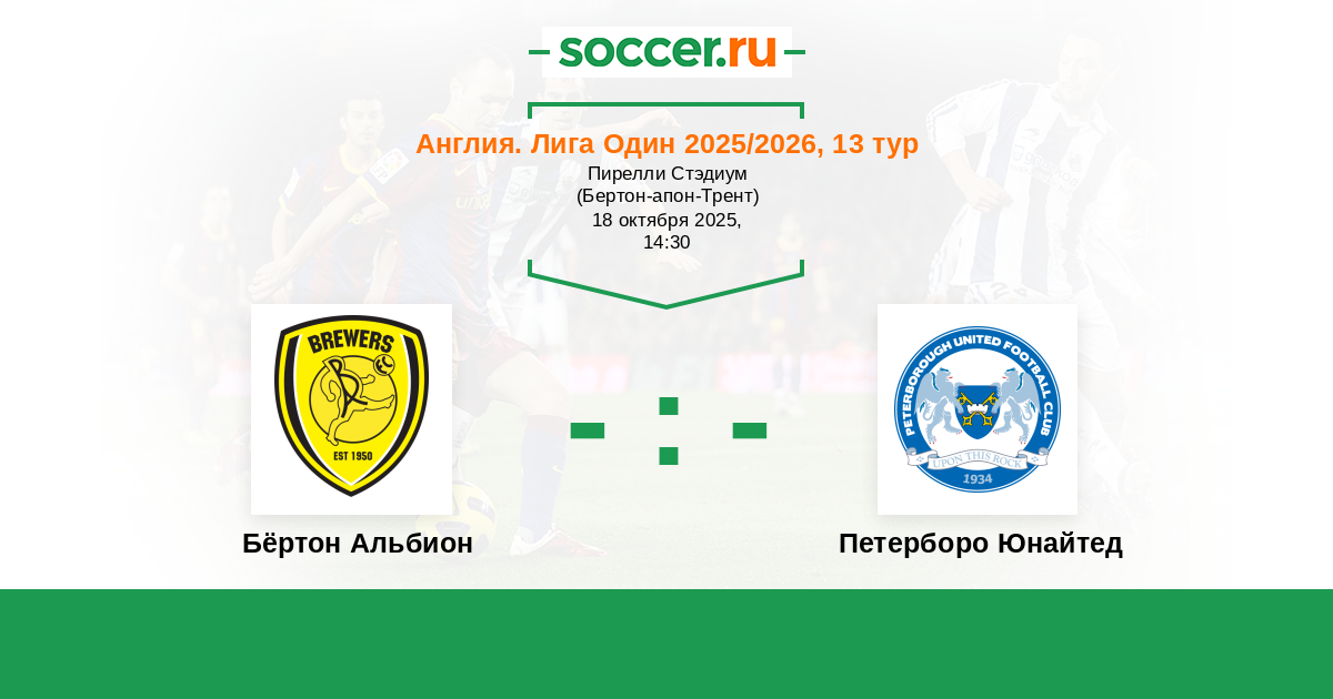 Протокол матча Бёртон Альбион против Петерборо Юнайтед