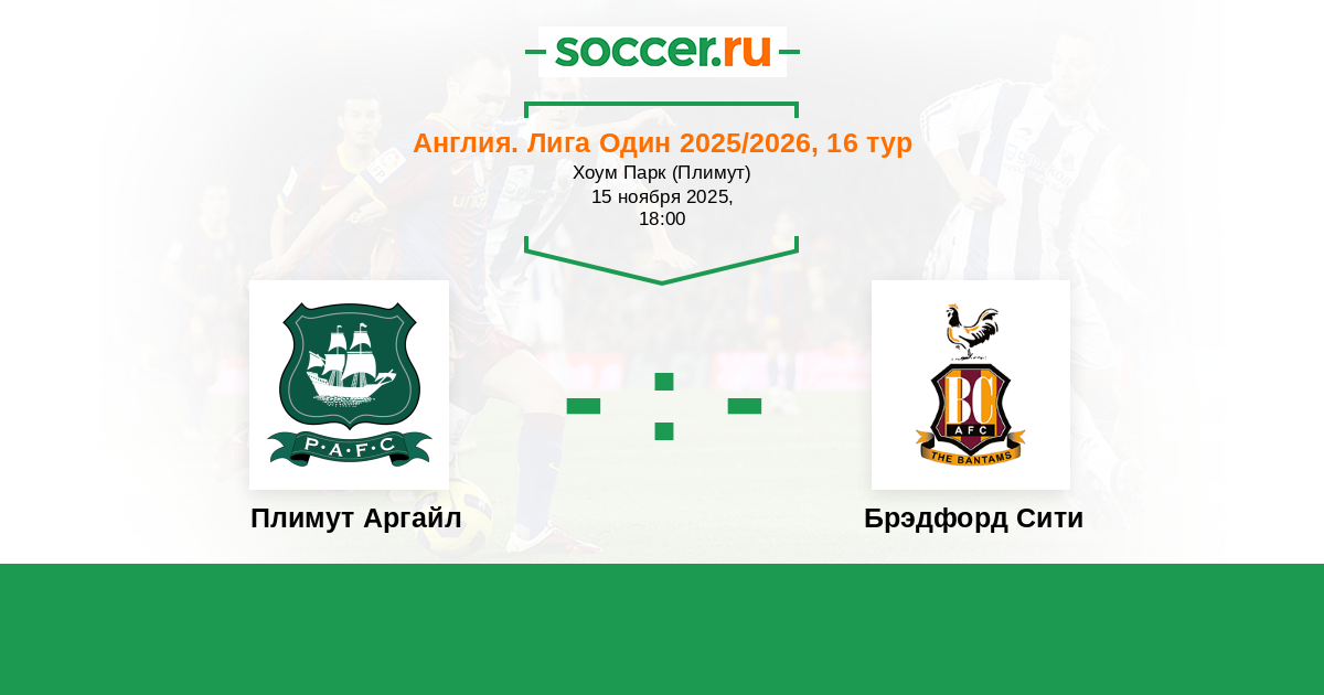 Протокол матча Плимут Аргайл против Брэдфорд Сити