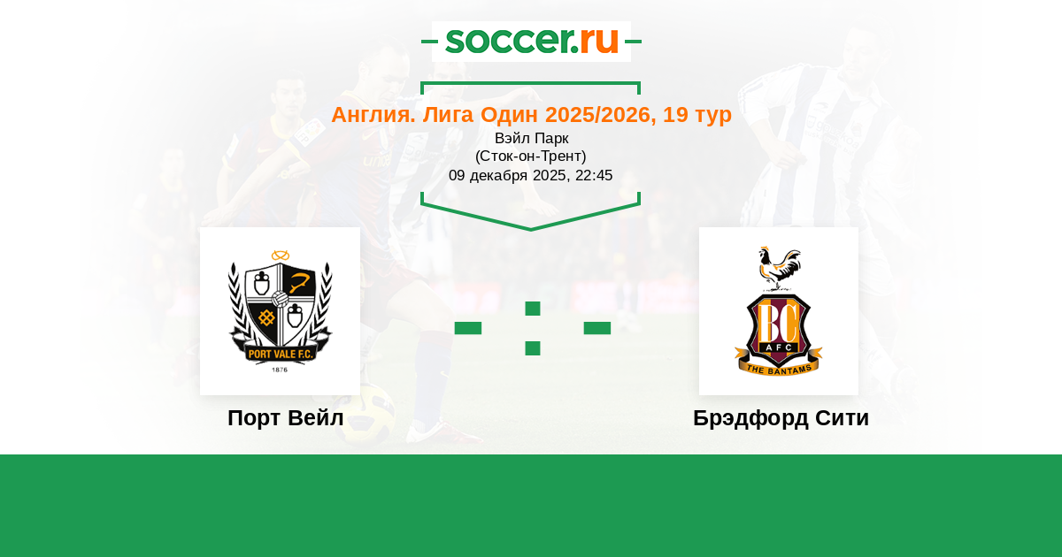 Англия. Вторая Футбольная Лига 29.12.2020 Брэдфорд Сити Логотип футбольный клуб Брэдфорд Сити 0:0 Логотип футбольный клуб Порт Вейл (Сток-он-Трент) Порт Вейл