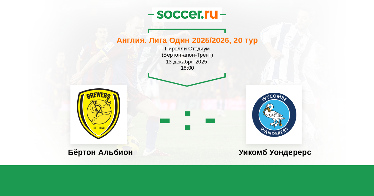Протокол матча Бёртон Альбион против Уикомб Уондерерс