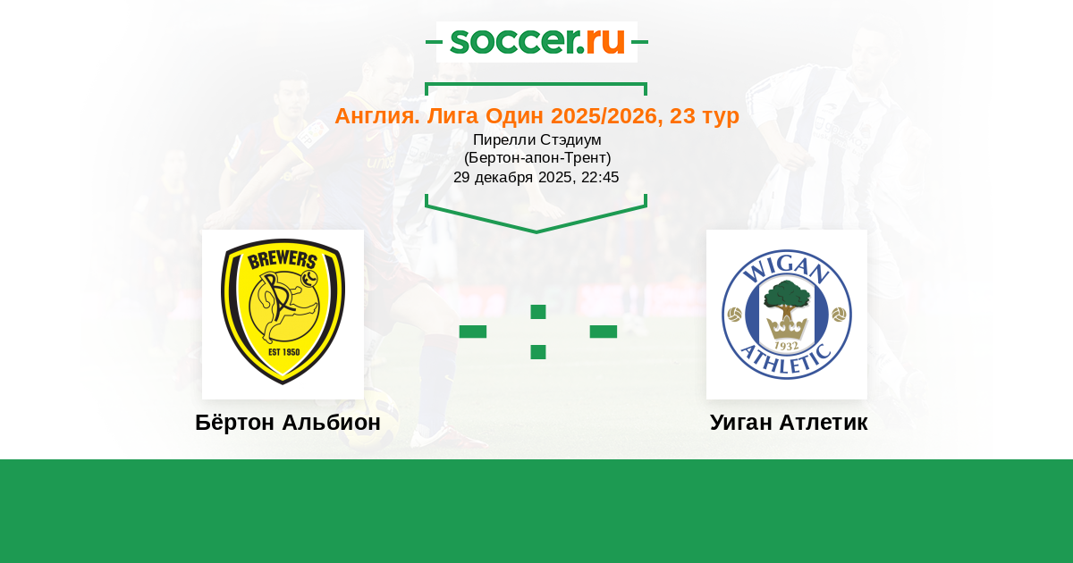 Протокол матча Бёртон Альбион против Уиган Атлетик