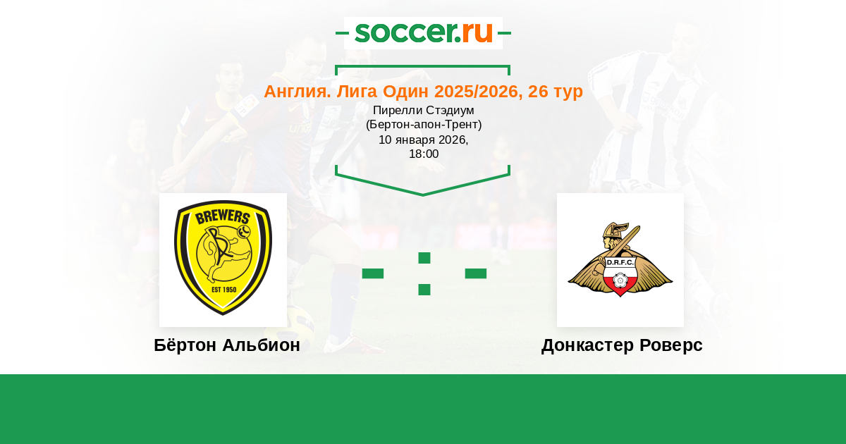 Англия. Первая Футбольная Лига 04.10.2025 Донкастер Роверс Логотип футбольный клуб Донкастер Роверс 1:1 Логотип футбольный клуб Бёртон Альбион (Бёртон-апон-Трент) Бёртон Альбион