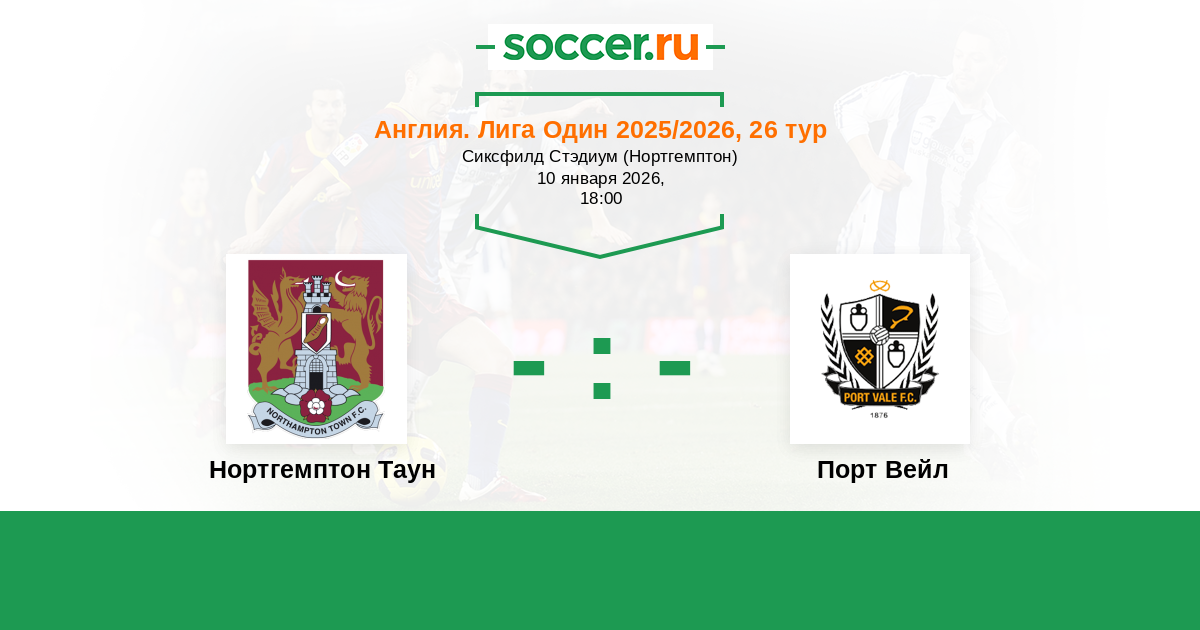 Англия. Первая Футбольная Лига 04.10.2025 Порт Вейл Логотип футбольный клуб Порт Вейл (Сток-он-Трент) 0:0 Логотип футбольный клуб Нортгемптон Таун Нортгемптон Таун