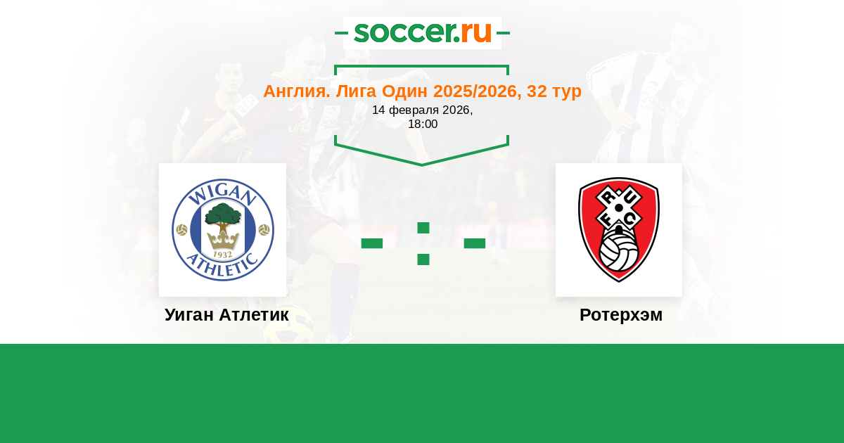Англия. Первая Футбольная Лига 14.04.2018 Уиган Атлетик Логотип футбольный клуб Уиган Атлетик 0:0 Логотип футбольный клуб Ротерхэм (Шеффилд) Ротерхэм