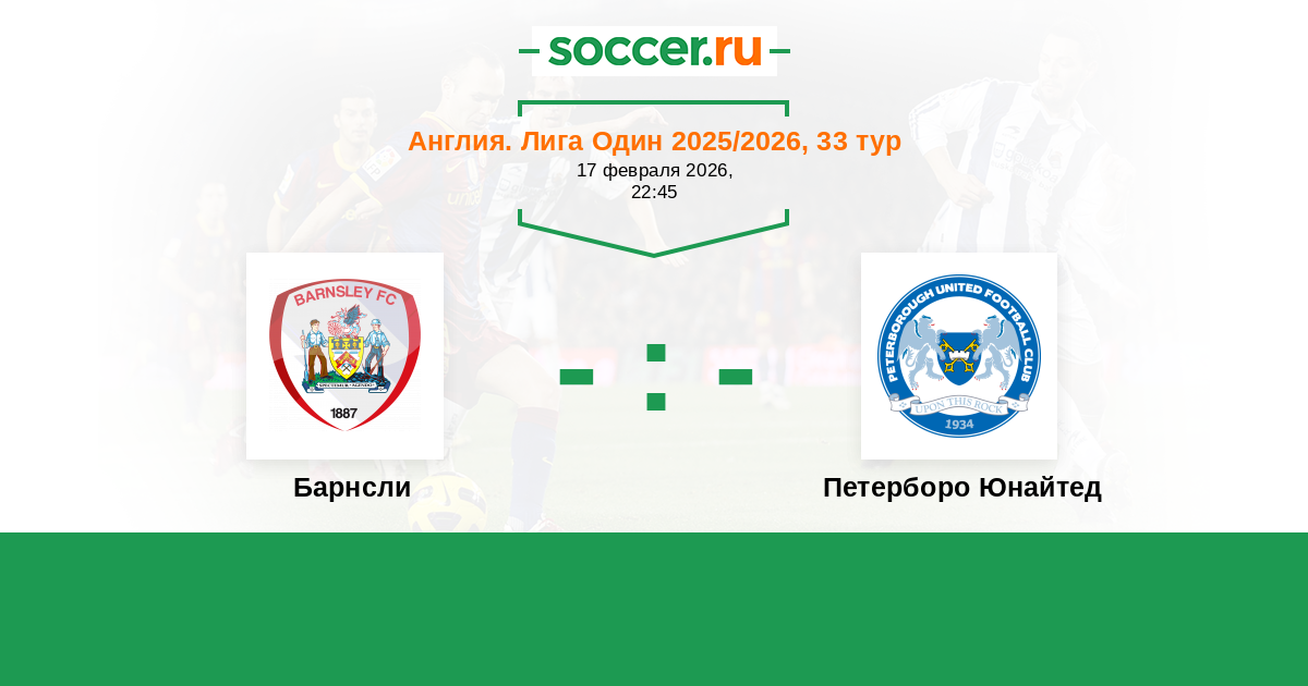 Англия. Чемпионшип 18.04.2022 Барнсли Логотип футбольный клуб Барнсли 0:2 Логотип футбольный клуб Петерборо Юнайтед Петерборо Юнайтед