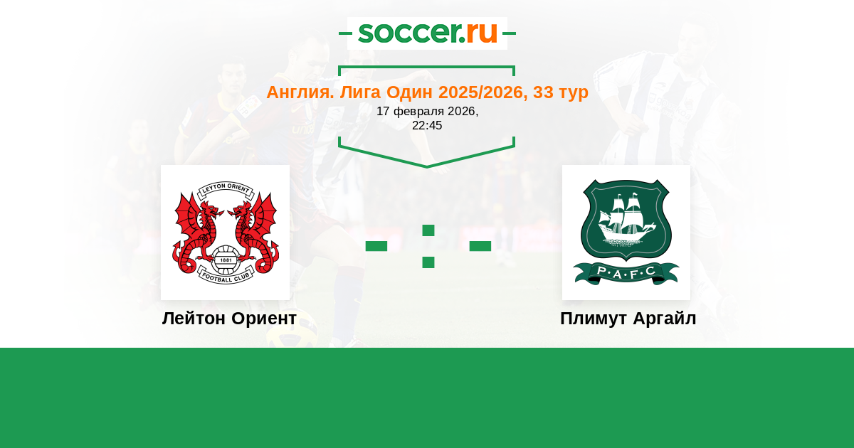 Англия. Первая Футбольная Лига 19.08.2025 Плимут Аргайл Логотип футбольный клуб Плимут Аргайл 0:1 Логотип футбольный клуб Лейтон Ориент Лейтон Ориент