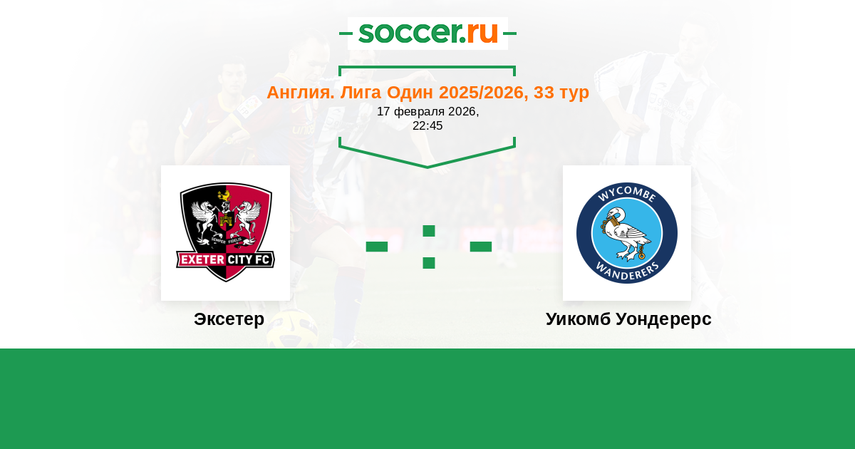 Англия. Первая Футбольная Лига 26.12.2023 Эксетер Логотип футбольный клуб Эксетер 1:0 Логотип футбольный клуб Уикомб Уондерерс (Хай-Вайкомб) Уикомб Уондерерс