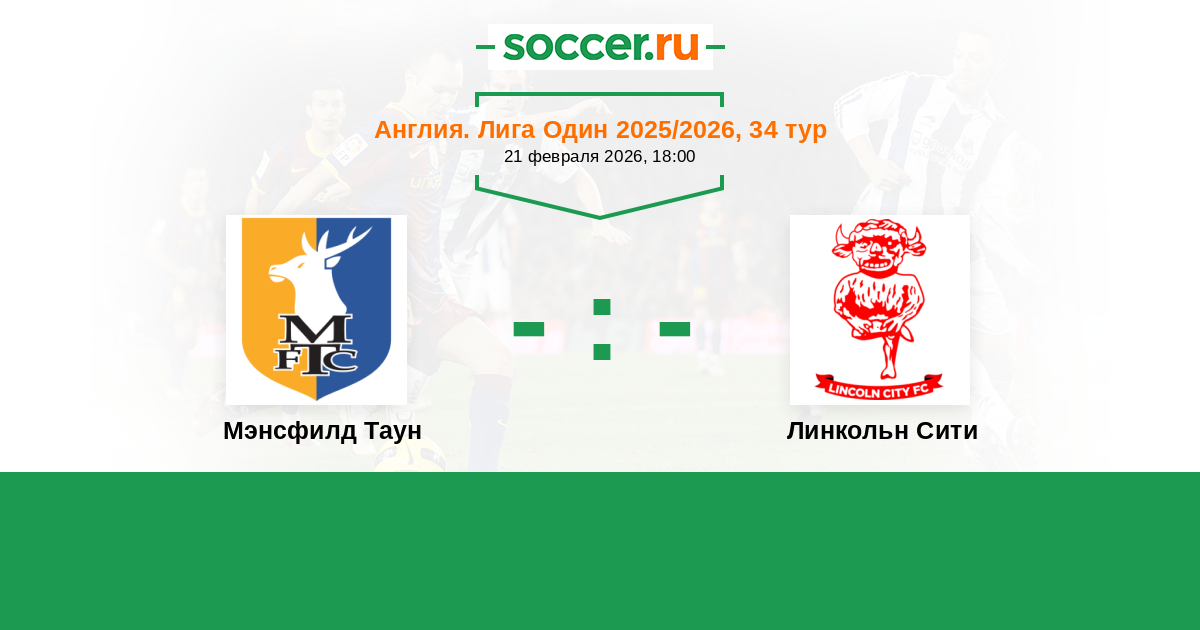 Англия. Первая Футбольная Лига 18.02.2025 Мэнсфилд Таун Логотип футбольный клуб Мэнсфилд Таун 0:3 Логотип футбольный клуб Линкольн Сити Линкольн Сити