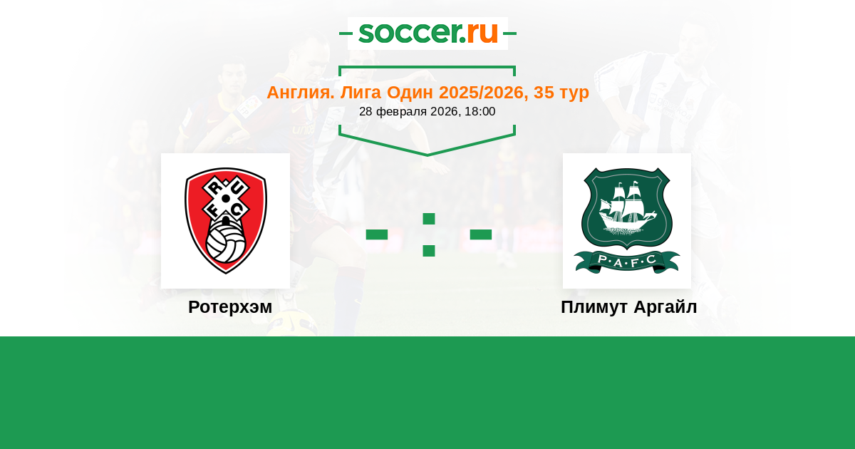 Англия. Первая Футбольная Лига 26.02.2022 Плимут Аргайл Логотип футбольный клуб Плимут Аргайл 0:1 Логотип футбольный клуб Ротерхэм (Шеффилд) Ротерхэм