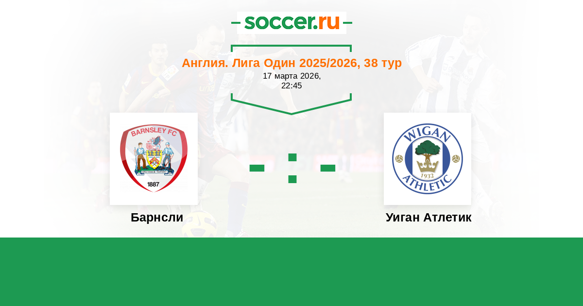 Англия. Первая Футбольная Лига 29.03.2025 Уиган Атлетик Логотип футбольный клуб Уиган Атлетик 1:1 Логотип футбольный клуб Барнсли Барнсли