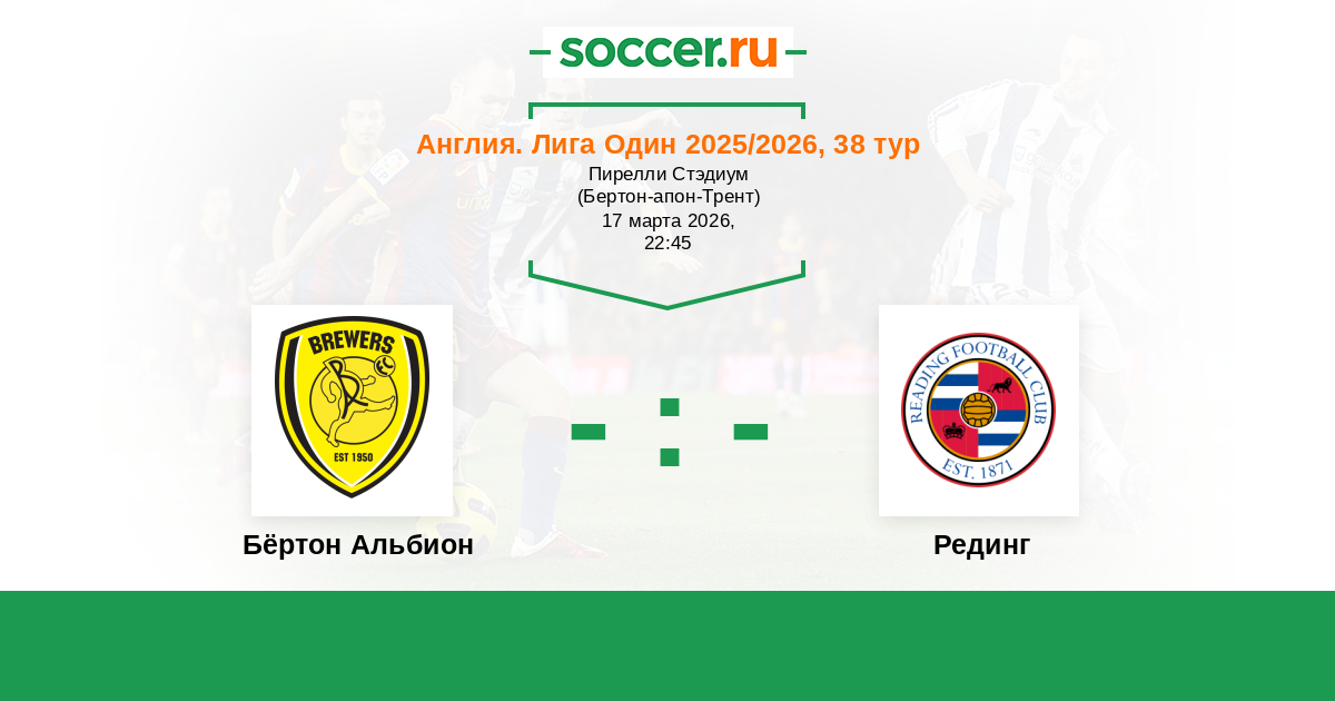 История матча Бёртон Альбион против Рединг