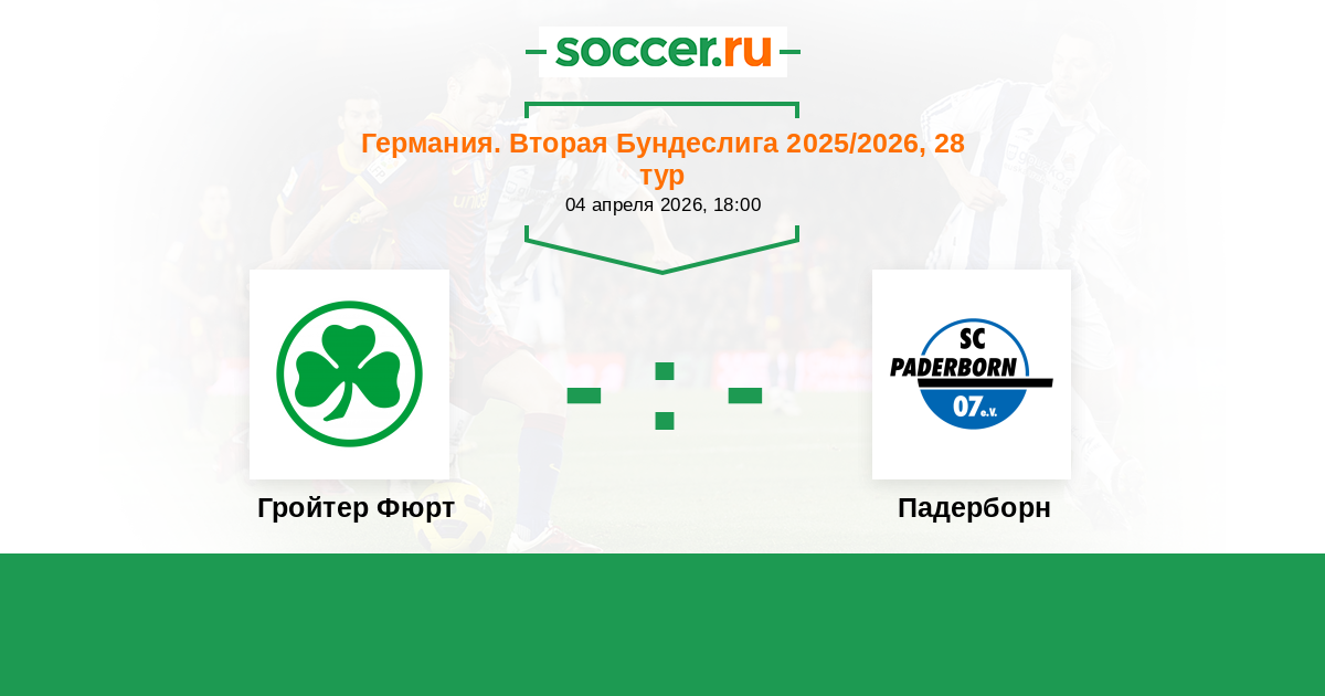 Германия. Бундеслига 2 24.08.2024 Гройтер Фюрт Логотип футбольный клуб Гройтер Фюрт 1:1 Логотип футбольный клуб Падерборн Падерборн