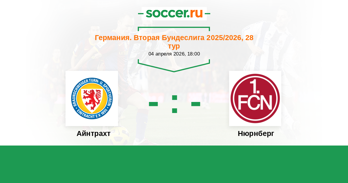 Германия. Бундеслига 2 30.04.2018 Нюрнберг Логотип футбольный клуб Нюрнберг 2:0 Логотип футбольный клуб Айнтрахт (Брауншвейг) Айнтрахт