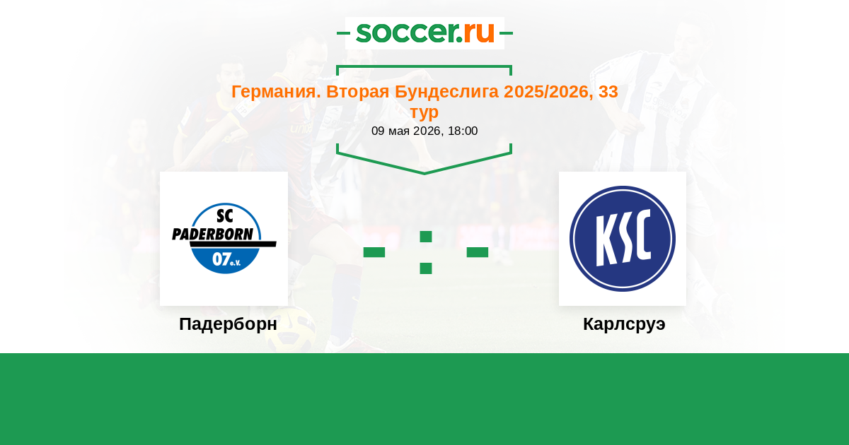 Германия. Бундеслига 2 18.05.2025 Карлсруэ Логотип футбольный клуб Карлсруэ 3:0 Логотип футбольный клуб Падерборн Падерборн