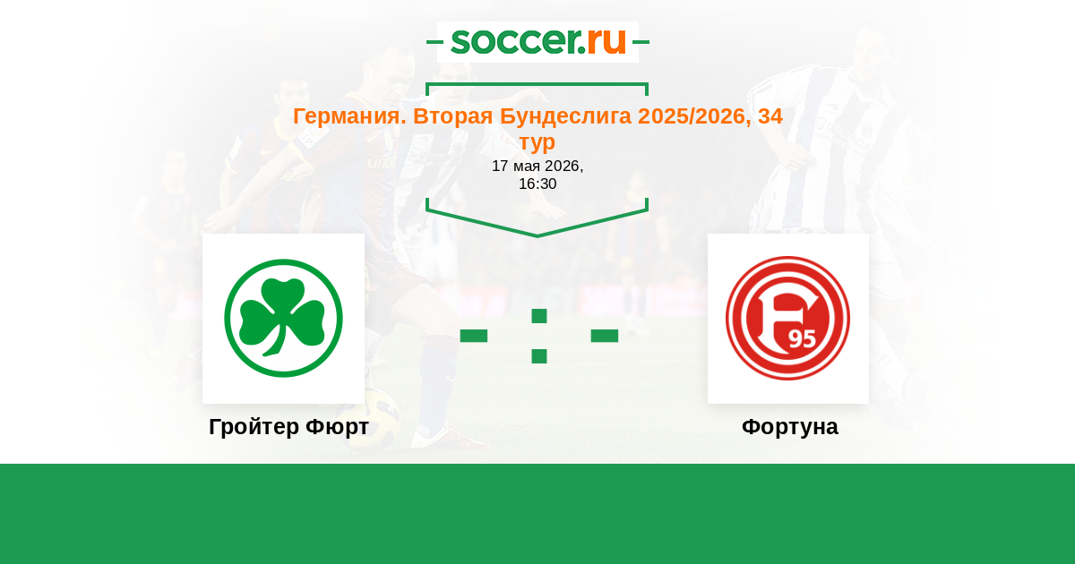 Германия. Бундеслига 2 17.02.2018 Фортуна Логотип футбольный клуб Фортуна (Дюссельдорф) 1:1 Логотип футбольный клуб Гройтер Фюрт Гройтер Фюрт