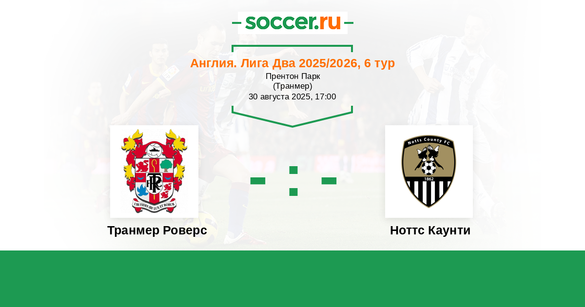Протокол матча Транмер Роверс против Ноттс Каунти