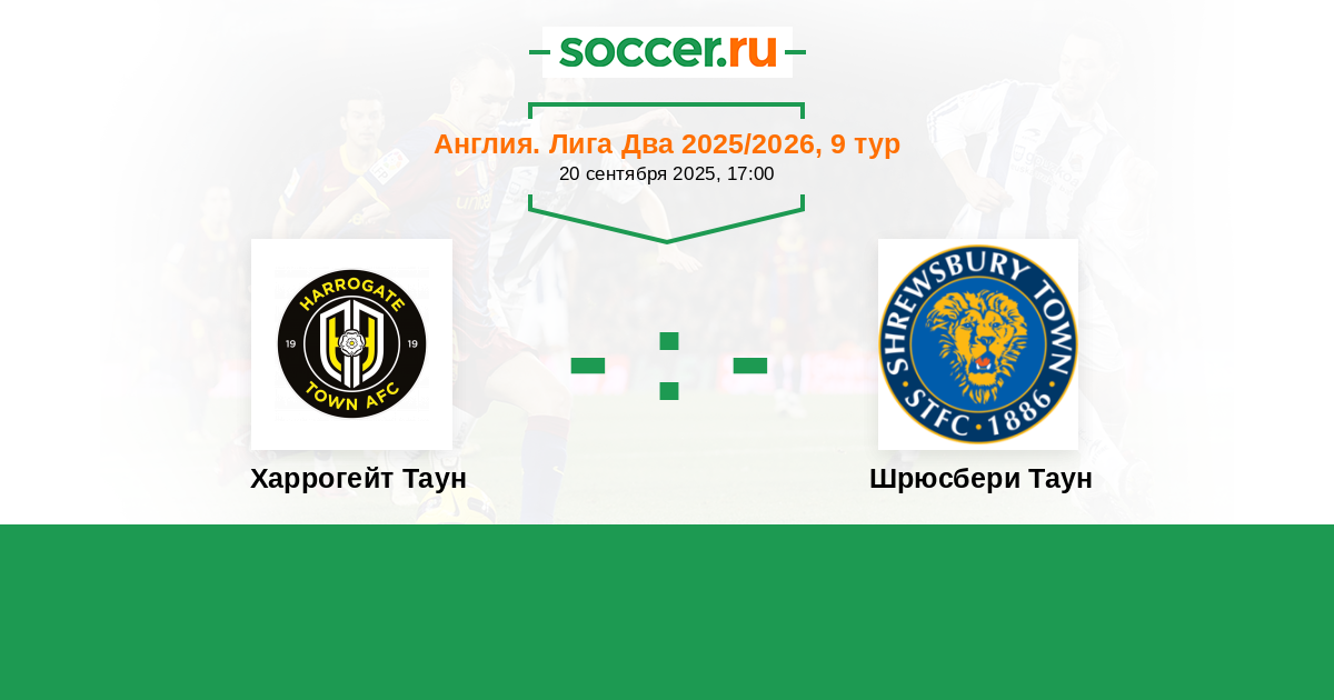 Протокол матча Харрогейт Таун против Шрюсбери Таун