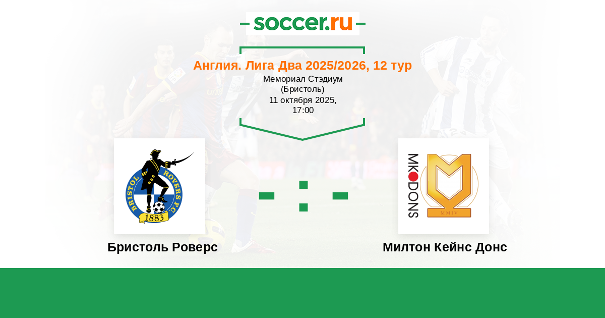 Протокол матча Бристоль Роверс против Милтон Кейнс Донс