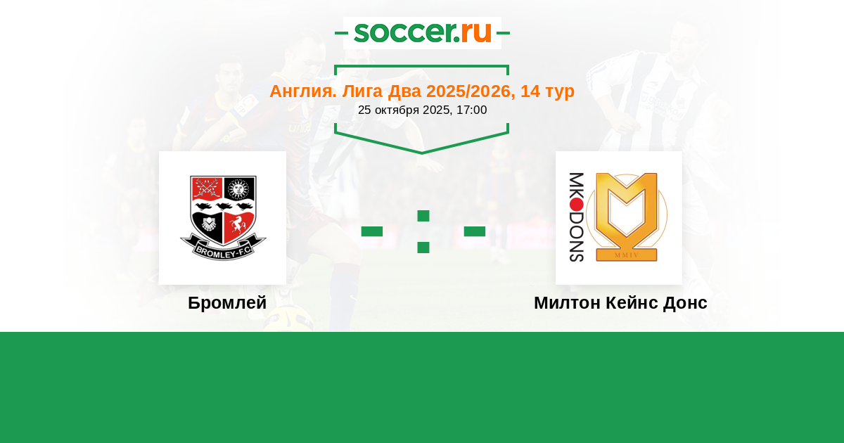 Протокол матча Бромлей против Милтон Кейнс Донс
