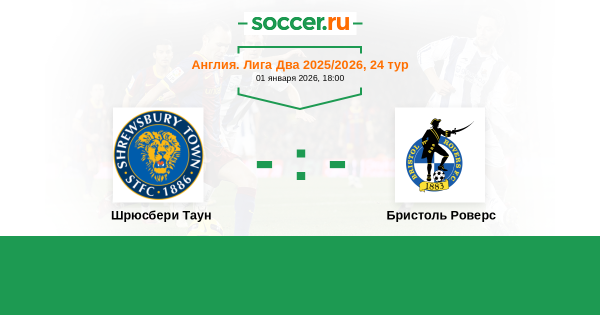Протокол матча Шрюсбери Таун против Бристоль Роверс