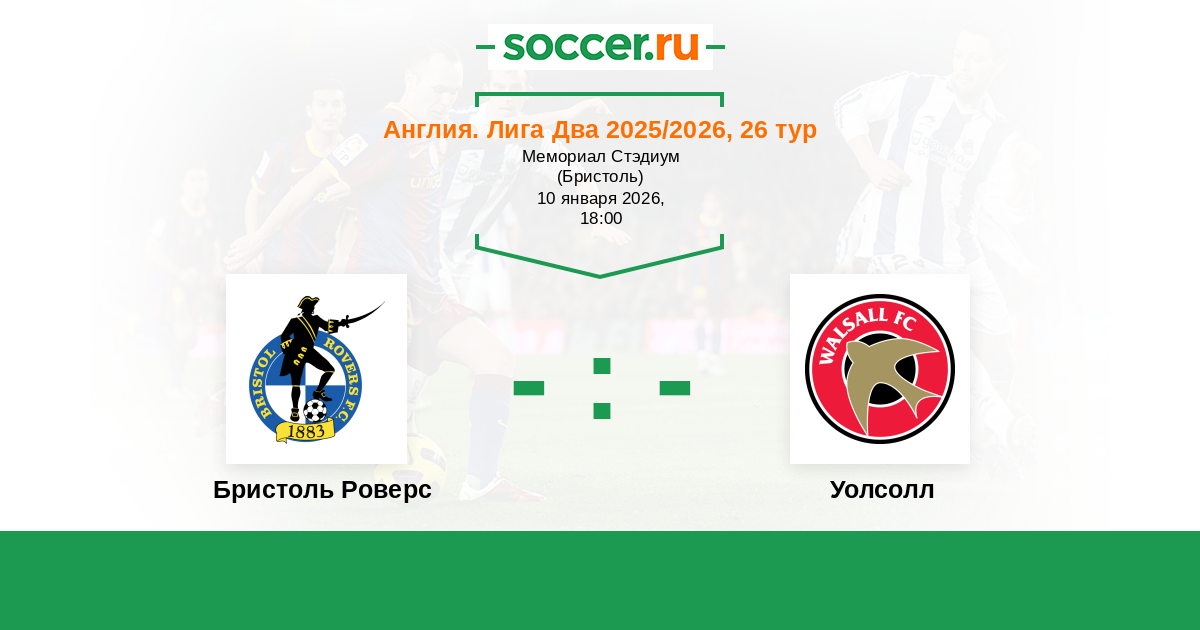 Англия. Первая Футбольная Лига 26.12.2017 Уолсолл Логотип футбольный клуб Уолсолл 0:0 Логотип футбольный клуб Бристоль Роверс Бристоль Роверс