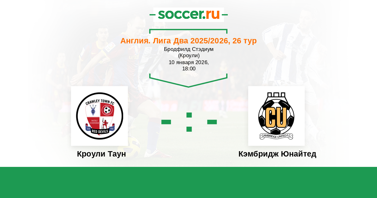 Англия. Вторая Футбольная Лига 06.10.2018 Кроули Таун Логотип футбольный клуб Кроули Таун 2:0 Логотип футбольный клуб Кэмбридж Юнайтед Кэмбридж Юнайтед