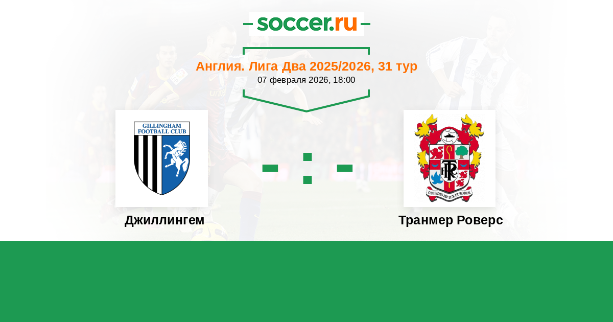 История матча Джиллингем против Транмер Роверс