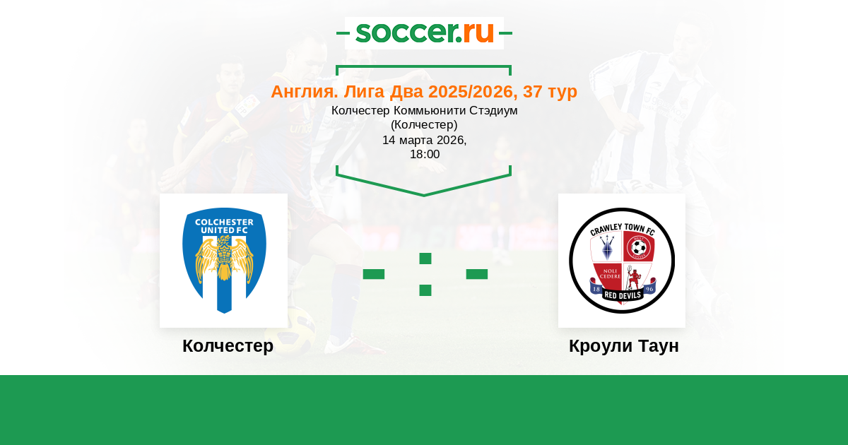 Англия. Вторая Футбольная Лига 01.01.2020 Колчестер Логотип футбольный клуб Колчестер 1:1 Логотип футбольный клуб Кроули Таун Кроули Таун