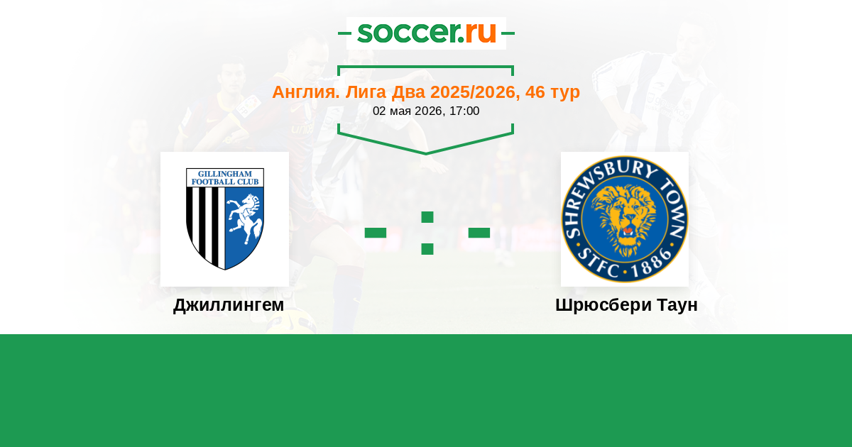 Англия. Первая Футбольная Лига 13.04.2019 Джиллингем Логотип футбольный клуб Джиллингем 0:2 Логотип футбольный клуб Шрюсбери Таун Шрюсбери Таун
