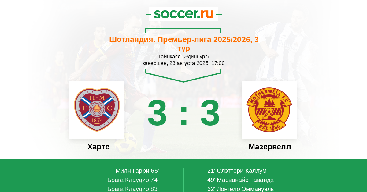 Протокол матча Хартс против Мазервелл