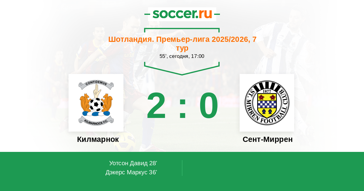 Протокол матча Килмарнок против Сент-Миррен