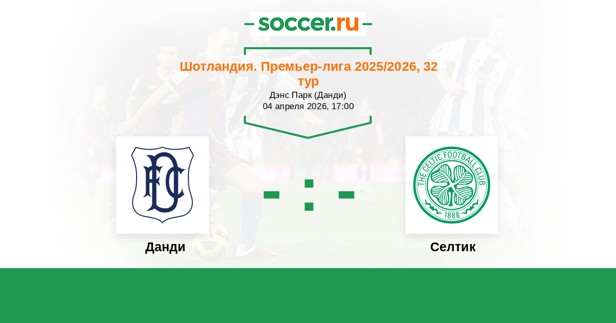 Шотландия. Премьер-Лига 04.04.2018 Селтик Логотип футбольный клуб Селтик (Глазго) 0:0 Логотип футбольный клуб Данди Данди