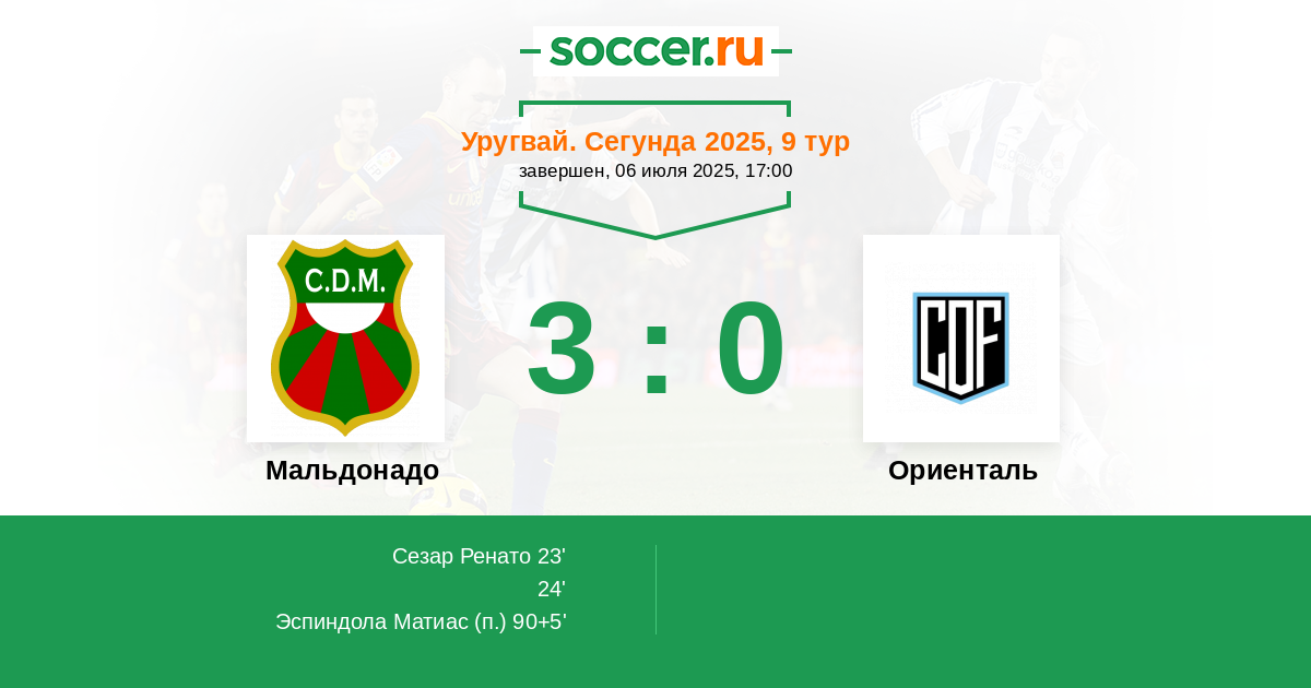 Протокол матча Мальдонадо против Ориенталь